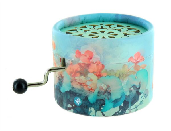 Diese Spieluhr mit Handkurbel ist mit einem traditionellen 18-Ton-Spielwerk versehen.