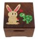 Boîte à musique en bois massif (noyer, érable, cerisier, poirier...) avec marqueterie traditionnelle: lapin et tortue.