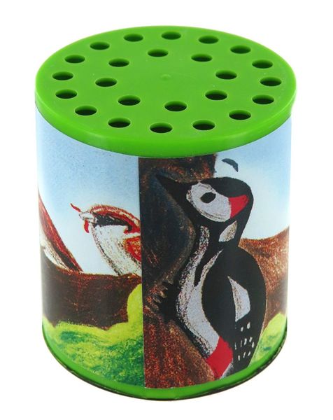 Cylindrique, la boîte à cui-cui, boîte à meuh "oiseau" ou boîte à oiseau est décorée d´une image d'oiseaux sur des branches.