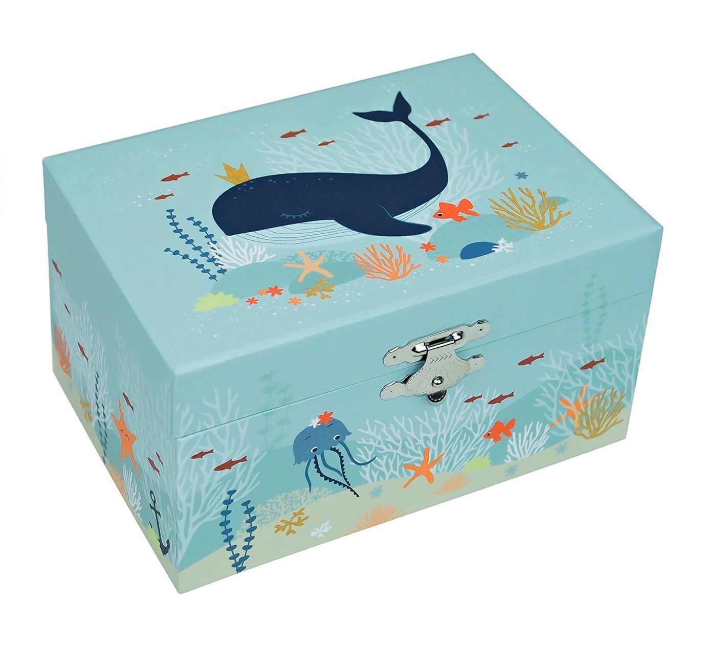 Boîte à bijoux musicale Trousselier en bois recouvert de papier décoré avec poisson Arc-en-ciel en résine.