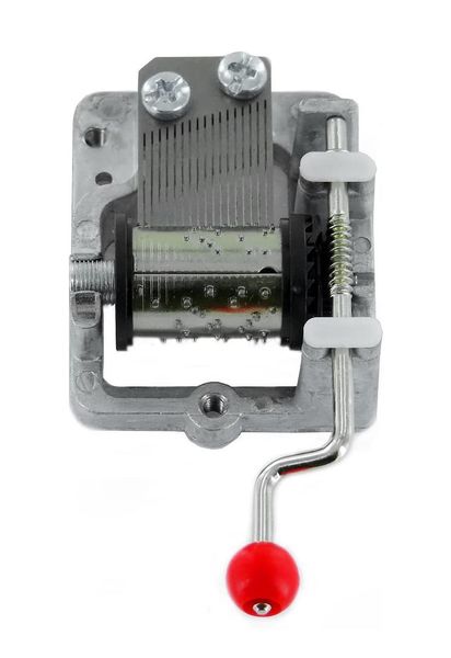 Cette boîte à musique à manivelle est dotée d'un mécanisme musical traditionnel de 18 notes.