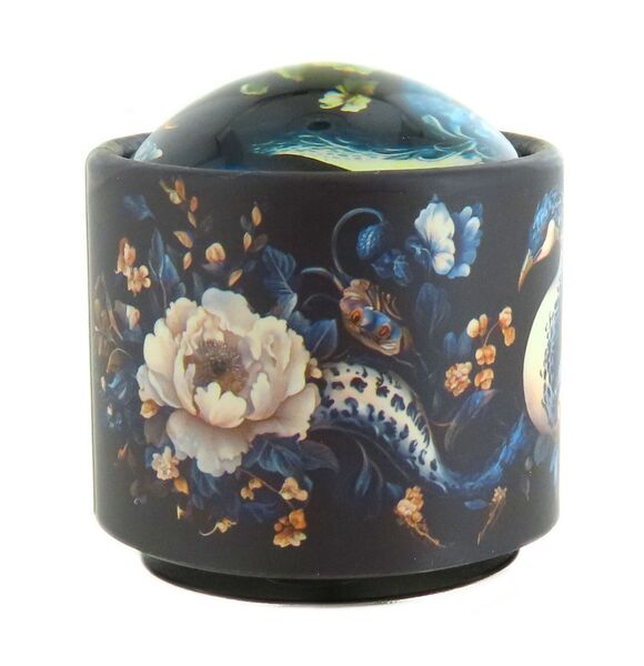 Boîte à musique animée en carton illustré avec demi-globe en verre au dessin de couleurs vives produisant un effet féérique.