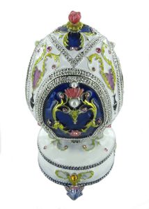 Uovo musicale in stile Fabergé di smalto e metallo.
