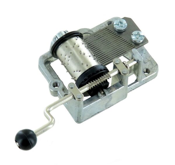 Depois de girar a manivela desta caixa de música continuamente e no ritmo certo, a melodia soa.