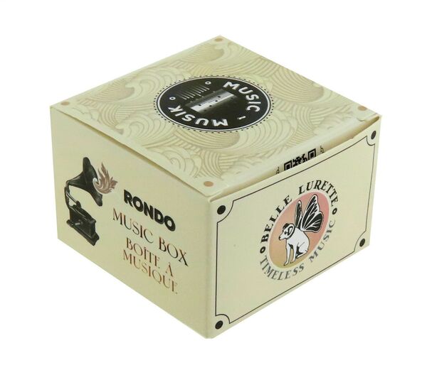Dimensiones de esta caja de música de manivela: 6 X 6 X 3,8 cm.